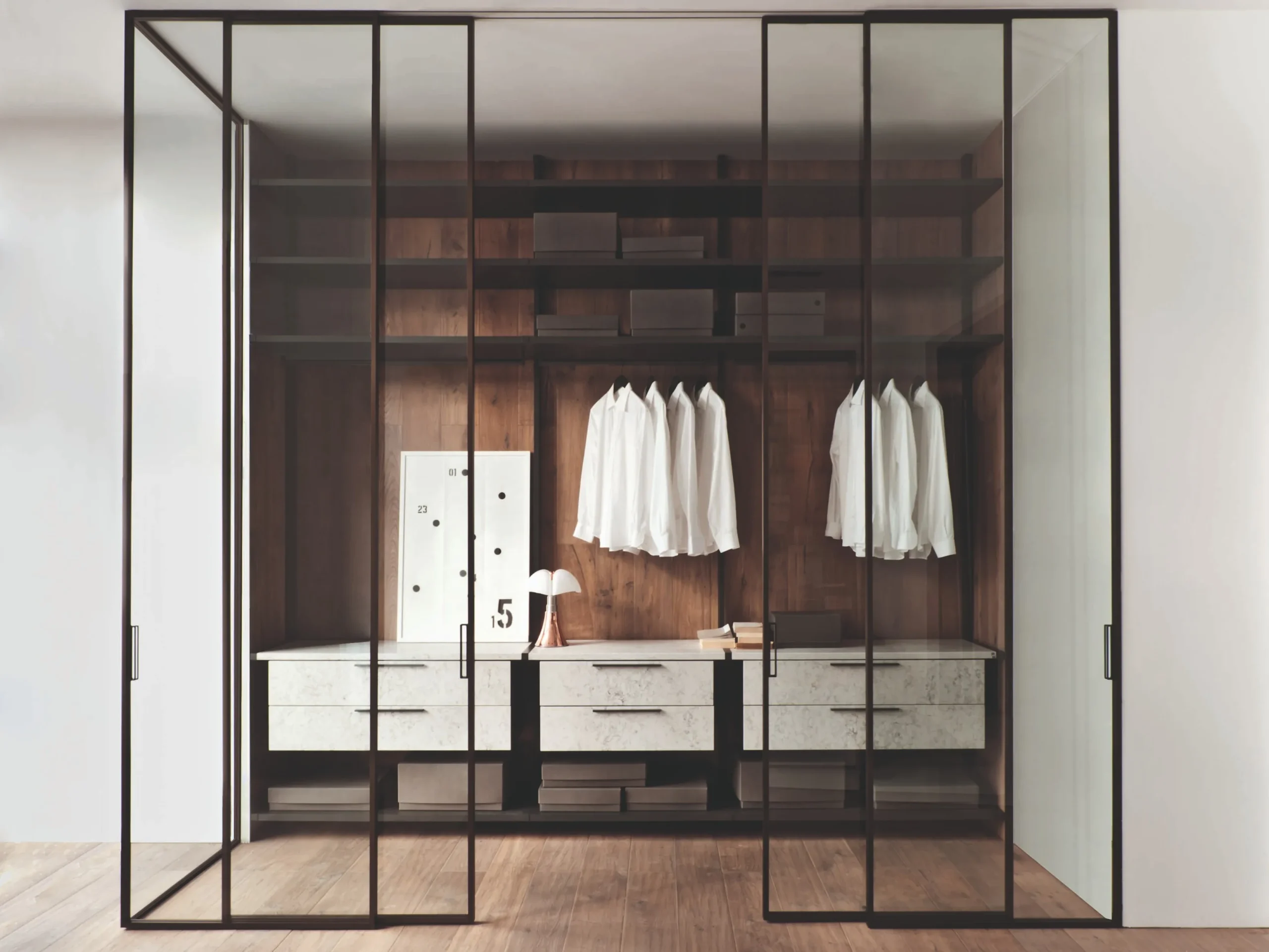 The PRIMA Sliding Glass Door by ALBED is a minimal, modular partition solution crafted for modern architectural interiors. Designed with a sleek aluminum profile and customizable glass or wood inserts, it offers seamless spatial transitions while preserving transparency and light. Available with wall-mounted, ceiling-mounted, or concealed rail systems, PRIMA is adaptable to diverse layouts—from single panels to four-panel configurations. Part of the cohesive PRIMA collection, this sliding system ensures visual continuity across door types while delivering Italian-made engineering precision. Ideal for offices, homes, and commercial spaces seeking refined division without visual clutter.