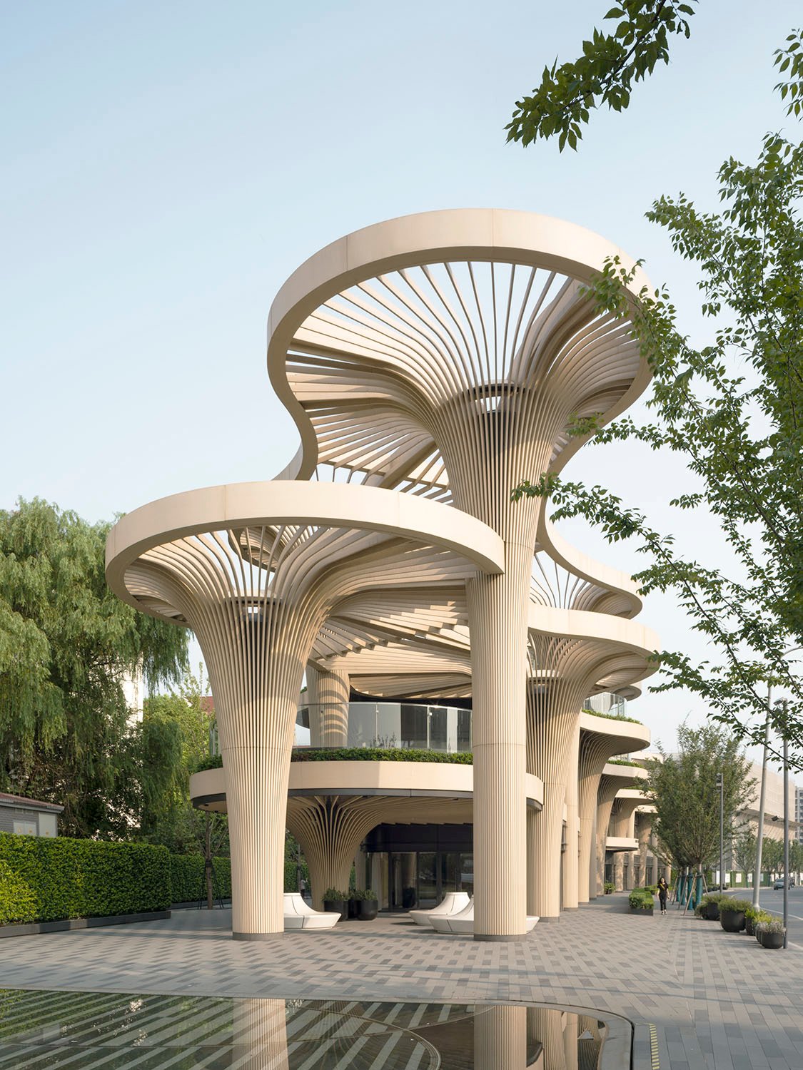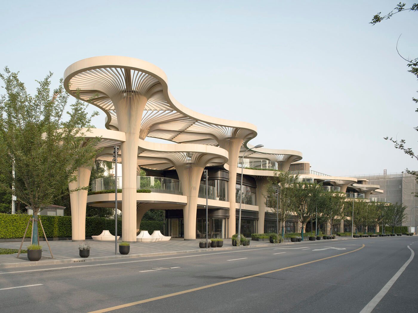 The Solar Trees Marketplace in Shanghai, China, is a groundbreaking commercial project designed by Koichi Takada Architects. This visionary architectural design blends sustainability, biophilic principles, and cultural symbolism to create a market experience like no other. The structure features 32 tree-like timber canopies that resemble a forest of solar trees, offering natural shade and ventilation while housing retail spaces beneath.