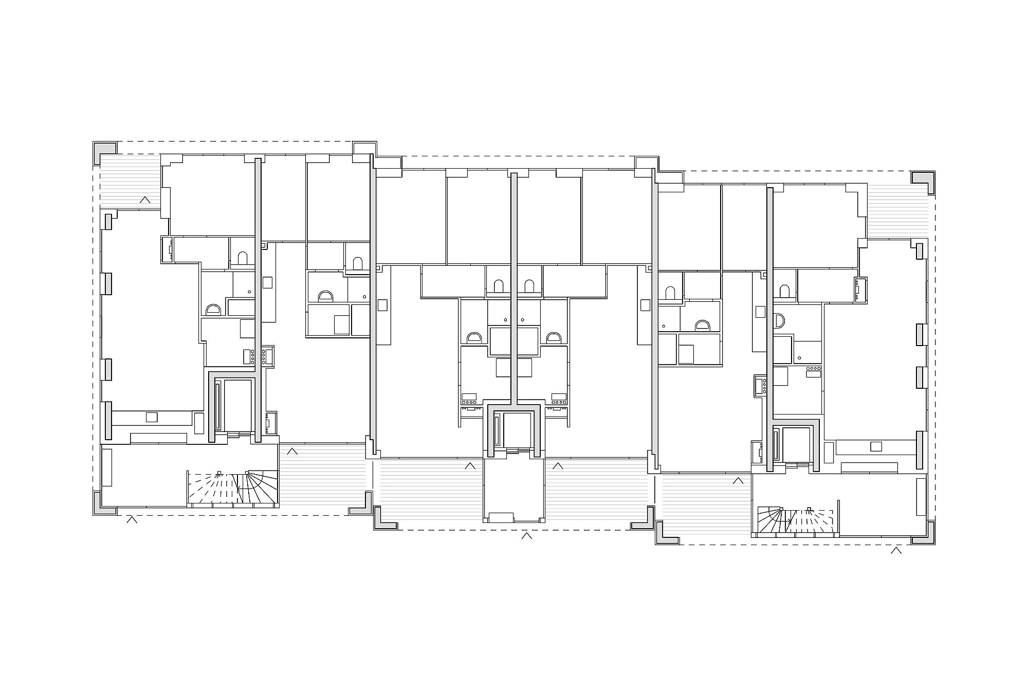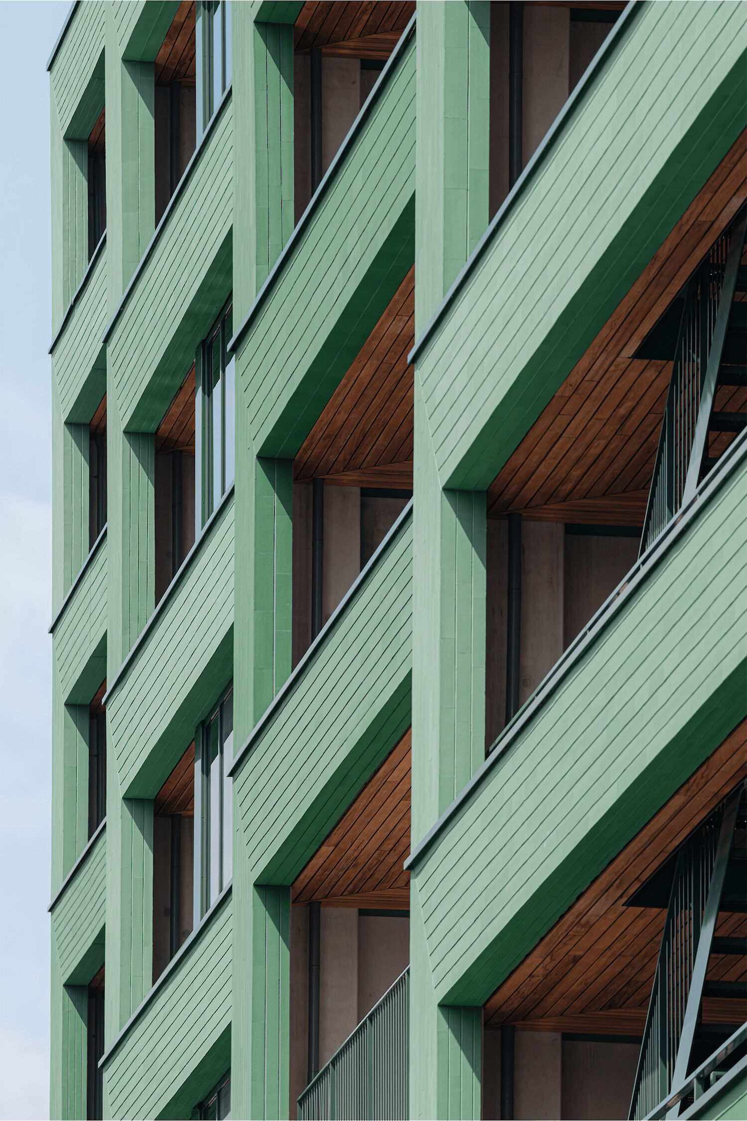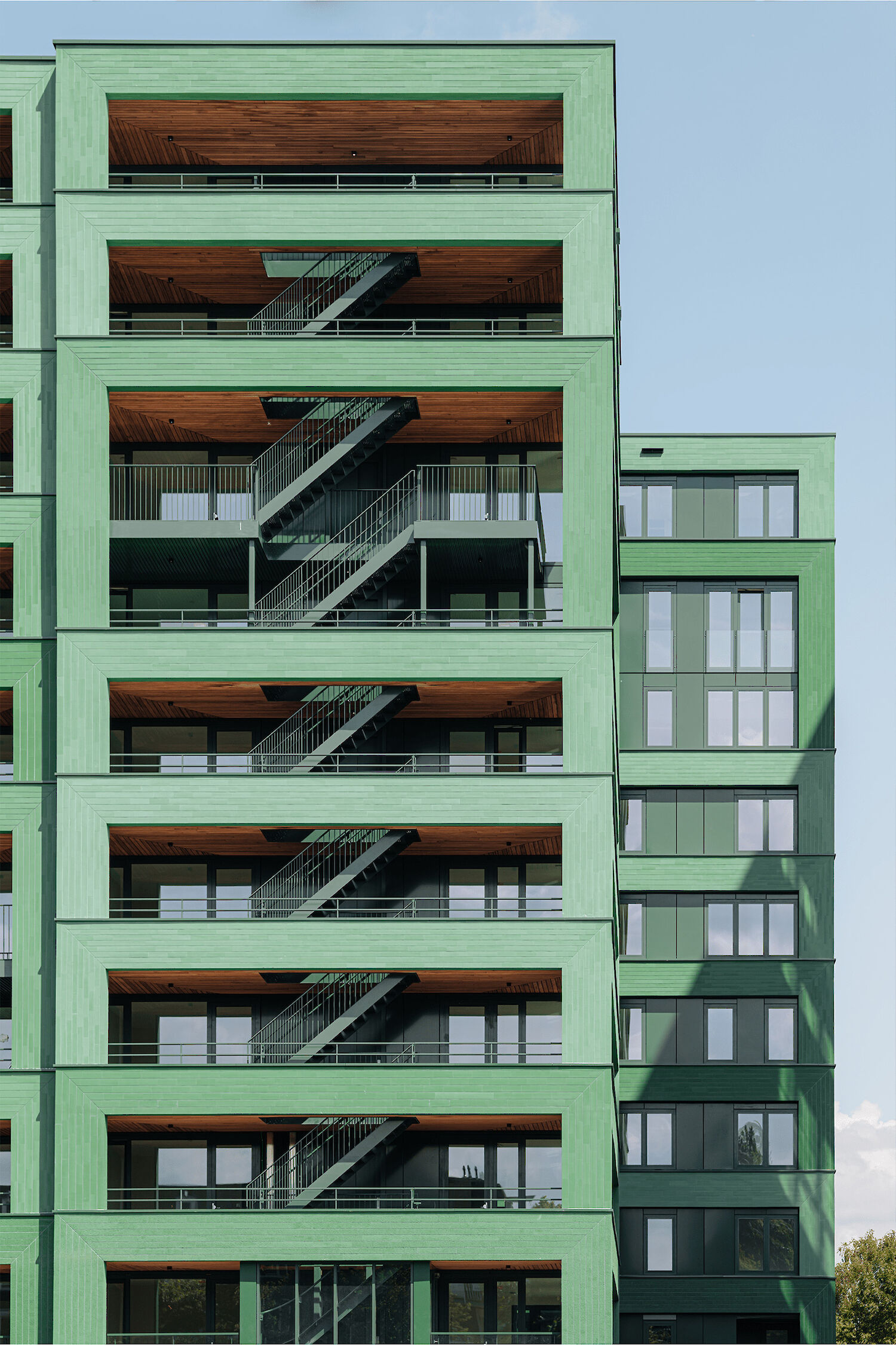 The project contains 250 compact rental apartments designed to maximize quality of life within a dense urban environment. Each dwelling benefits from two or three open façades, ensuring generous daylight penetration and natural ventilation. The design also guarantees that every living space is connected to an outdoor balcony oriented toward the south or west, providing optimal sunlight exposure and an extension of the interior living area.