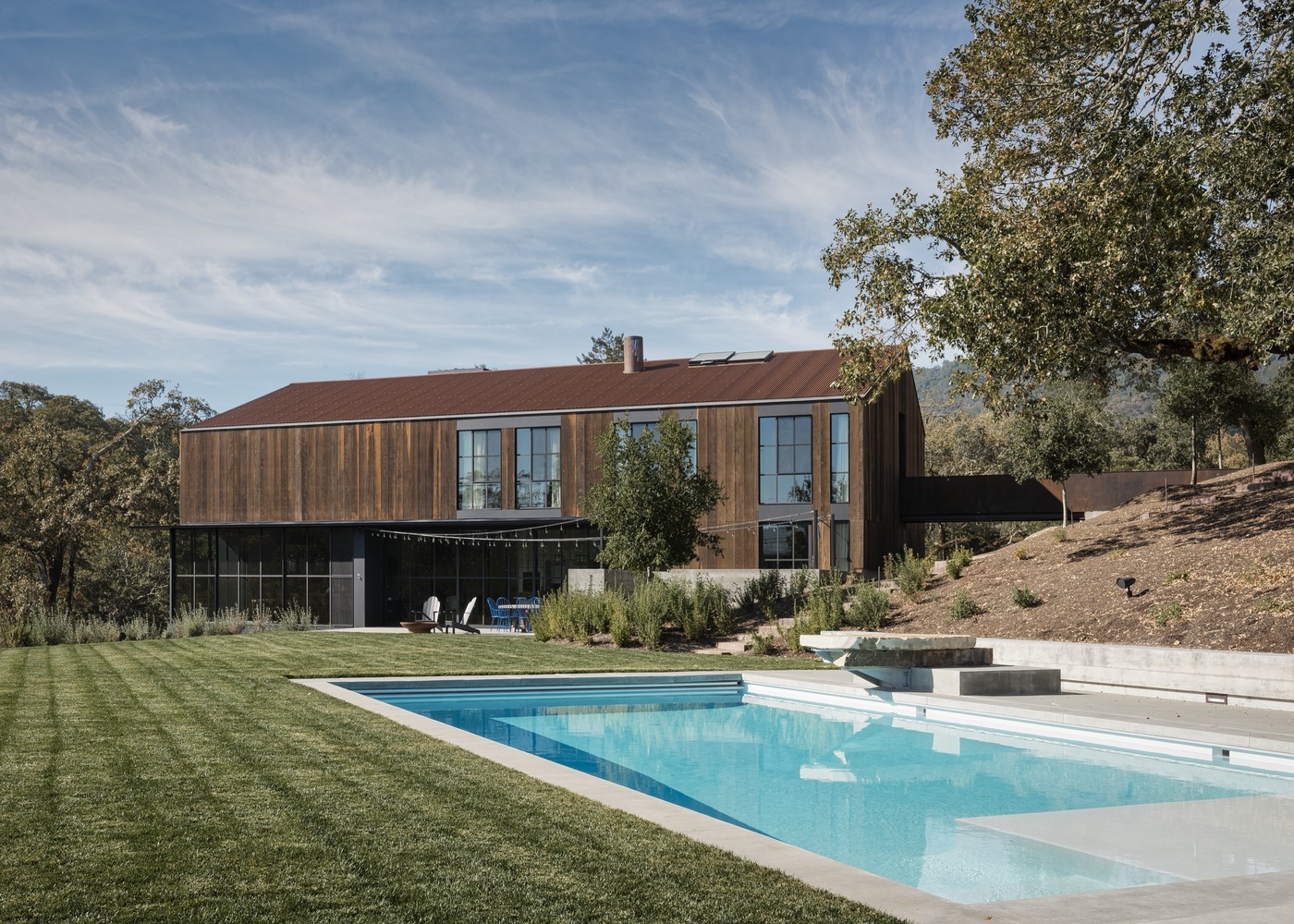 Big Barn by Faulkner Architects is a distinctive family retreat nestled in the rolling hills of Glen Ellen, California’s wine country, where agricultural heritage and modern design converge. Situated north of San Francisco, this project is inspired by the rural vernacular of the region and the owner’s desire for a weekend escape from urban life, evolving on the existing footprint of a 1950s ranch house into a contemporary interpretation of traditional barn typology.