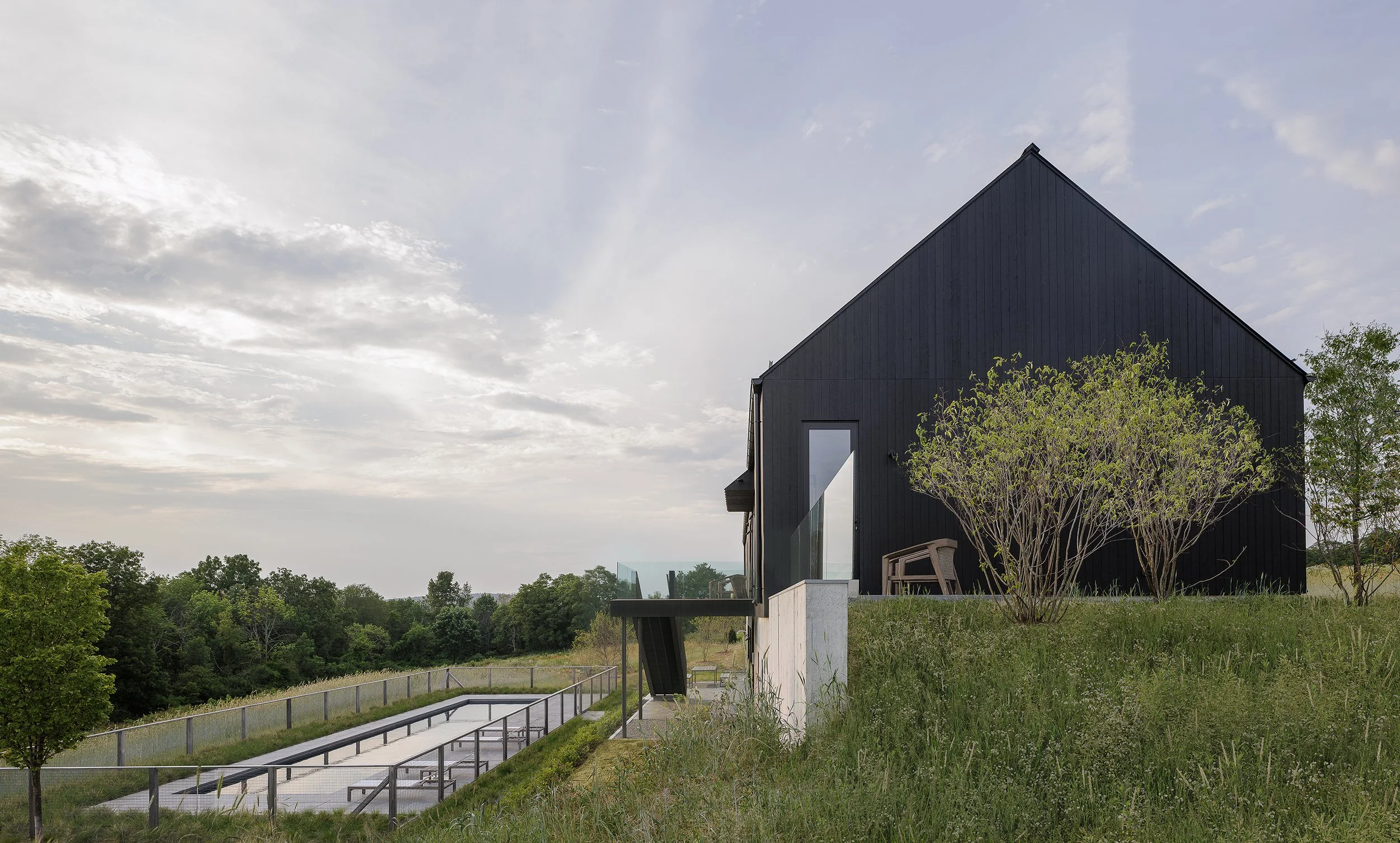 The residence was designed for a young family seeking a peaceful retreat from city life. With flexible living areas, generous outdoor spaces, and durable finishes suited to children and guests, the house creates an inviting environment for gatherings and everyday living. Through its restrained material palette, barn-inspired geometry, and integration with the hillside terrain, Clinton Corners House demonstrates how contemporary architecture can respectfully reinterpret rural building traditions.