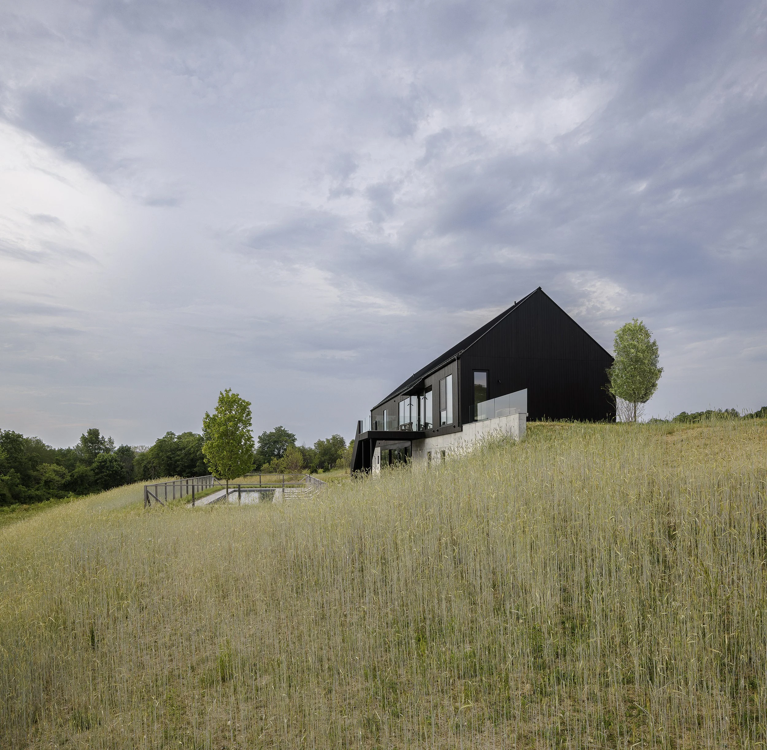 Modern hillside house architecture defines the design approach of Clinton Corners House, a rural residence designed by Desai Chia Architecture in Clinton Corners, New York. Positioned within an open meadow landscape, the house is carefully embedded into the natural slope of the site to reduce visual impact and strengthen the connection between architecture and the surrounding countryside.