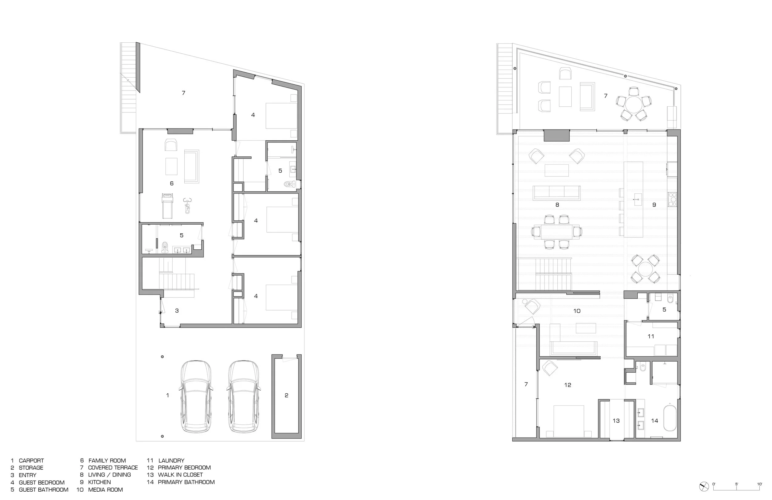 The house was designed for a local contractor and his family who wanted a residence that would encourage daily engagement with nature, including kayaking, beach walks, and outdoor living. The design draws inspiration from the native osprey birds that populate the surrounding preserve. Their elevated nests and marine habitat informed the organization, material palette, and architectural expression of the house. The building is conceived almost like a raised observation point within the landscape, allowing the occupants to observe wildlife and the shifting coastal environment.