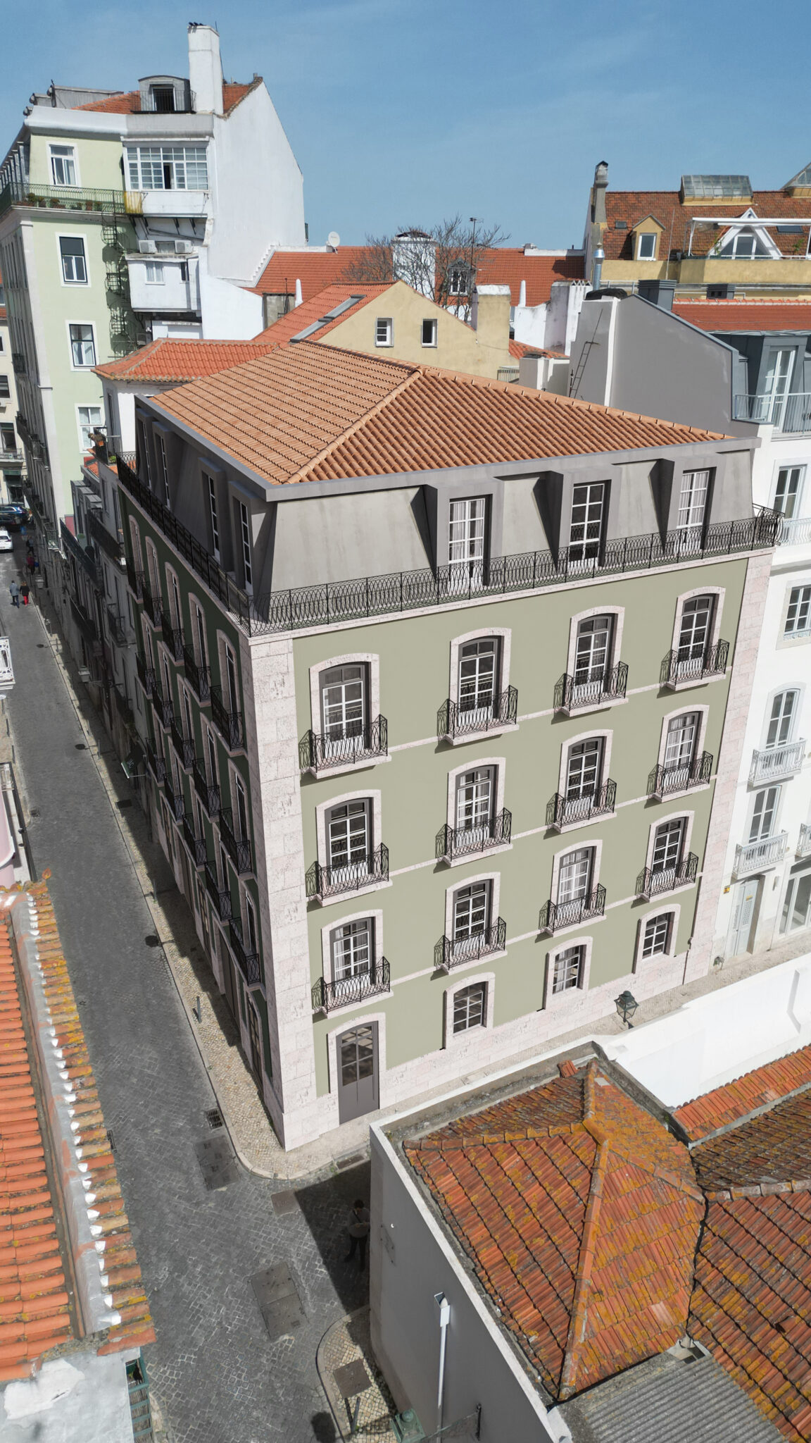 Rua da Rosa Lisbon, designed by Contacto Atlântico, is an urban renovation project located in the Príncipe Real district of Lisbon. The intervention focuses on the rehabilitation of a five-story building, combining commercial functions at ground level with residential units above. The project aims to reactivate an existing structure while preserving its architectural identity and adapting it to contemporary living standards. A key aspect of the design is the careful preservation of the building’s original elements. The main staircase and traditional ceilings are restored with precision, maintaining the historical character that defines the structure. Rather than replacing these features, the project integrates them into a renewed spatial system, where heritage and modernity coexist. This approach allows the building to retain its authenticity while improving its functionality and performance. The intervention also emphasizes environmental performance through passive strategies. Cross ventilation is enhanced across the building, improving indoor air quality and thermal comfort. Natural light is maximized, allowing interior spaces to feel open and connected to the exterior environment. The south-west-facing façade is redesigned with efficient frames and durable materials, ensuring both longevity and improved energy performance while maintaining the visual coherence of the building within its urban context. Material selection and construction strategies are aligned with sustainability goals, as the project is being prepared for BREEAM certification. This reflects a broader commitment to responsible design, where environmental considerations are integrated into every stage of the intervention. At the urban scale, the project strengthens the relationship between the building and the surrounding neighborhood. The ground floor activates the street through commercial use, while the upper residential levels provide a contemporary living environment within a historic framework. Through this layered approach, Rua da Rosa Lisbon becomes a model for adaptive reuse, demonstrating how existing structures can be transformed to meet current needs without losing their cultural and architectural value.