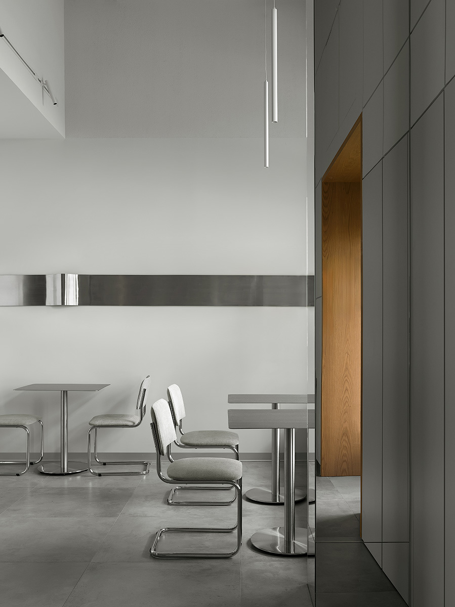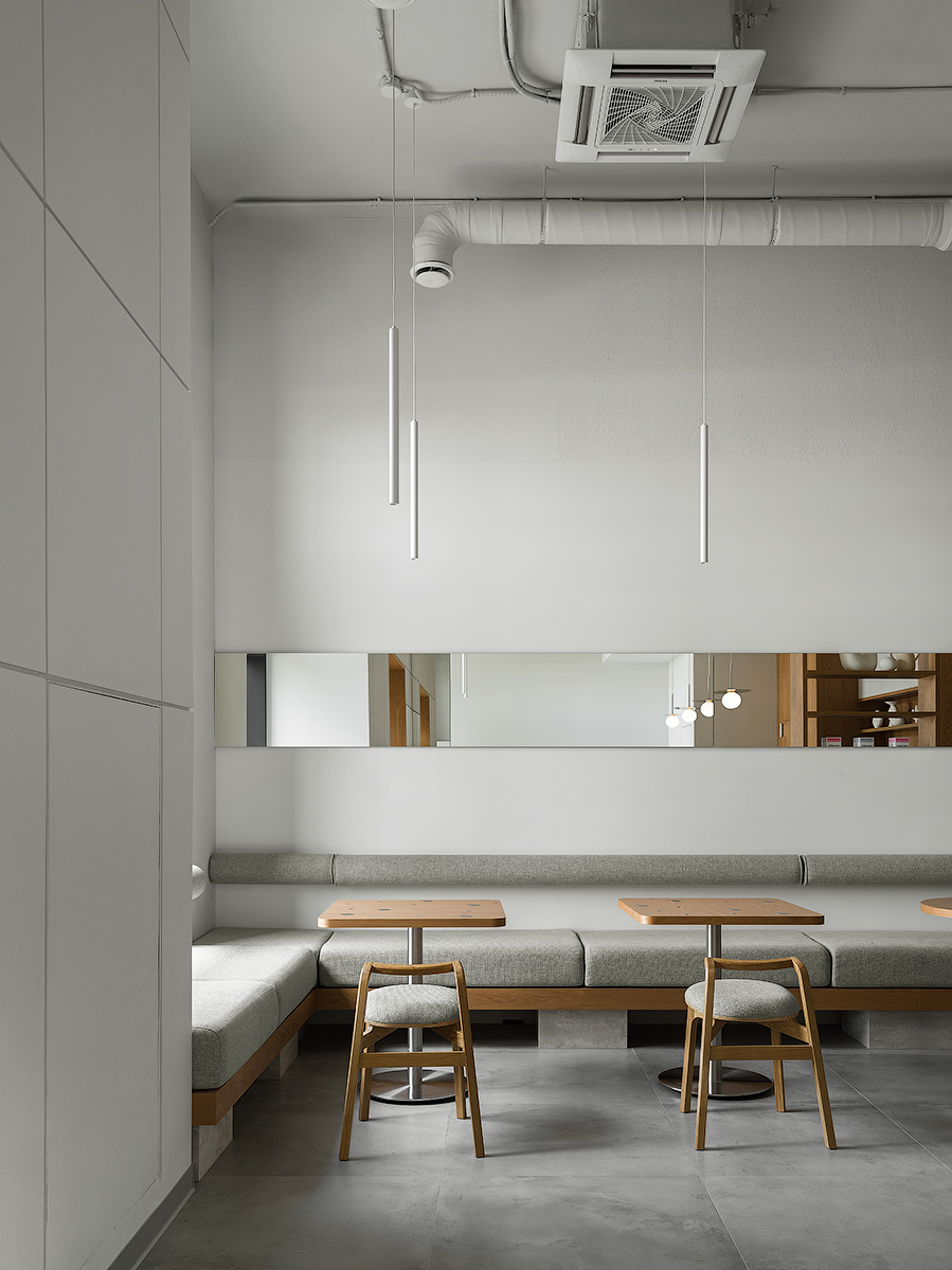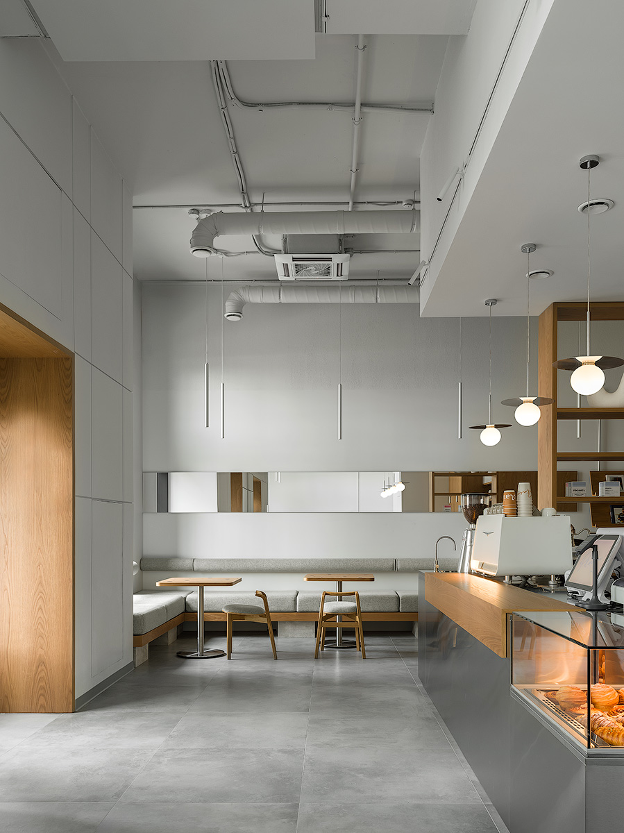 The simplicity of the project was determined from the very beginning — with the name of the café Plain (translated from English — simple, clear). Removing the unnecessary, the redundant and leaving the essence in the conditions of visual noise and information overload — the tasks that determined the minimalist design, allowing guests to focus on the main thing. Plain is the place where we wanted to embody our idea that in a clean space with minimal manipulations in design it is possible to create a comfortable functional interior that answers the question: "What is important to us today?" The founder of the café was reverent and involved in the project and its every detail, so we had to be convincing, making each element justified and subordinate to the concept of the project.