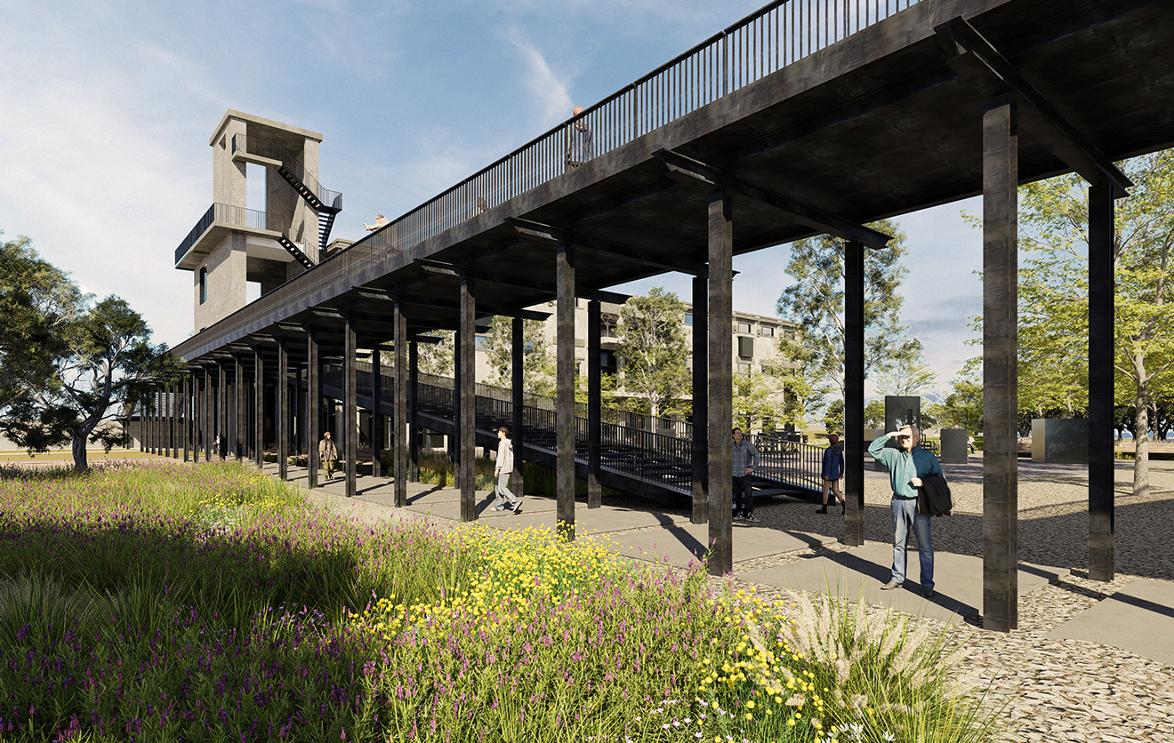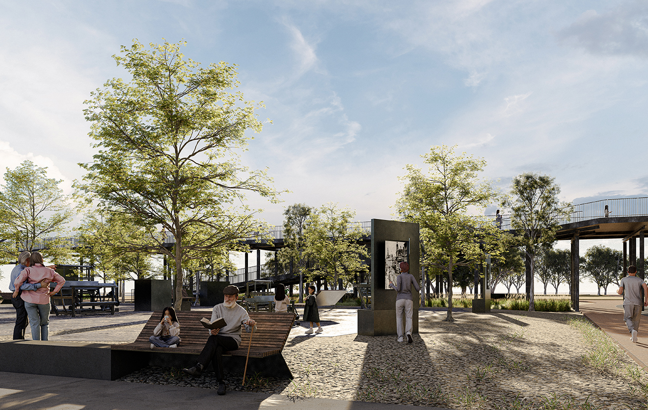 The project reimagines the underbridge area as a dynamic urban node where circulation, social activity, and cultural events intersect. Rather than treating the infrastructure as a barrier, the design frames the bridge as a spatial canopy under which new architectural elements and urban platforms can be inserted. Through carefully placed structures and landscape interventions, the design establishes a flexible environment capable of hosting temporary installations, public gatherings, and community activities.